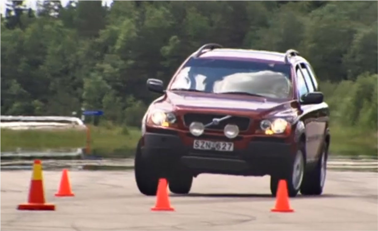 ![]() This maneuver simulated a sudden high-speed avoidance of an obstacle in the road, such as a MOOSE (of course). Volvo was calling this course the "MOOSE AVOIDANCE TEST." The DSTC system was truly an amazing feature. Many other tall vehicles would have certainly become unstable and possibly lost control, spun or maybe even rolled over, but Volvo's DSTC instantly took over the throttle and brakes and kept the big SUV in perfect form without a hint of trouble. Even with the driver's foot to the floor, we could feel how the DSTC aggressively controlled the throttle and all four brakes, each brake independently very quickly to keep the car stable. The result was the vehicle exiting the course in the proper direction, still at 60 mph plus, with perfect composure. This MOOSE TEST stuck in my mind as a remarkable event and something no other SUV at that time would dare try without a full roll cage and everyone in helmets. Then in January 2005, when Volvo began showing their new special concept XC90 at car expos, I spotted one of them at the Los Angeles International Car Expo. It was sporting shield stickers with a STANDING MOOSE profile. I think Volvo chose to put that sticker on their car because of their Moose Avoidance Test. That sticker got a lot of smiles from the crowd. I instantly thought maybe it could be better as a Prancing Moose; a parody of the Ferrari prancing horse. I had a car show coming up that same month, so I made some stickers and put them on my 245 below for that show. The new PRANCING MOOSE stickers went on the fenders and tailgate of my 245 below for the January 2005 SoCalEuro Meet in Anaheim, California. The response to those stickers from attendees was a big surprise. Photos were turning up in web pages and magazines all over. People eventually tracked me down and I began receiving many requests for that sticker (and then later other styles). So I began making a few at a time. I never really expected it would become popular or something others would want.