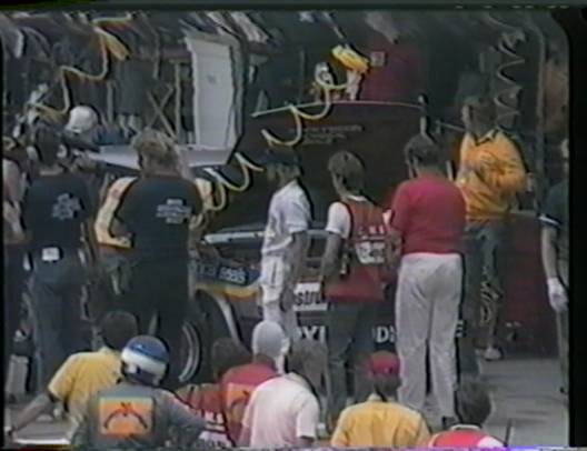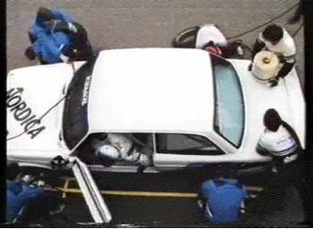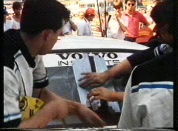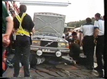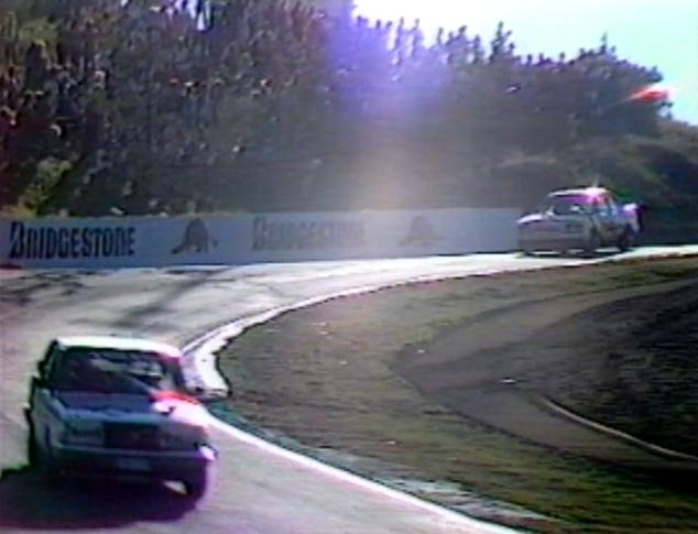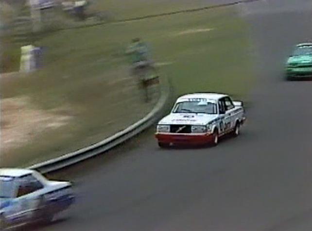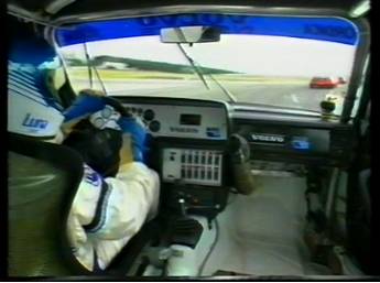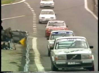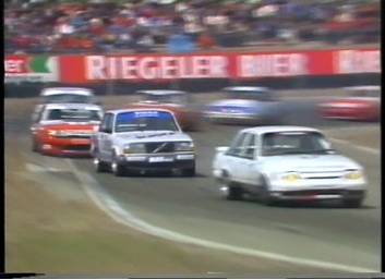 was one Volvo entry for this race: Mark Petch Volvo Turbo, car number 55, driven by Robbie Francevic (NZ) and John Bowe (AUS). The Volvo started in 5th position on the grid. They had a great start, gaining two positions shortly after turn 1 and following the two lead TWR Jaguars up the hill. Through much of the race the Volvo traded between 2nd and 3rd pace with some very good racing. At some point after 60 laps, the Volvo went into the pits and driver Robbie Francevic was interviewed. He explained the failure during an on-camera interview as a faulty alternator. This repair put them a number of laps behind the leaders. The Volvo then ran short of fuel on lap 122 and was out of the race. |