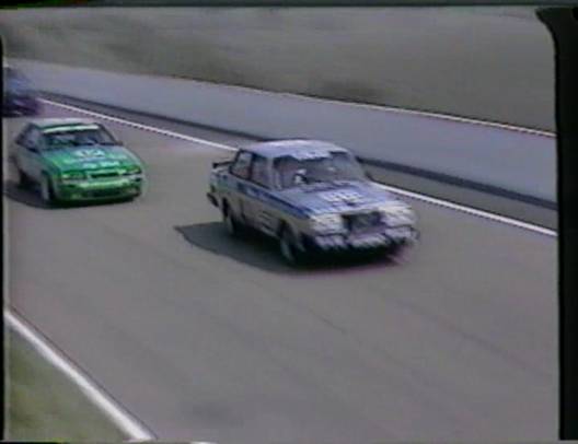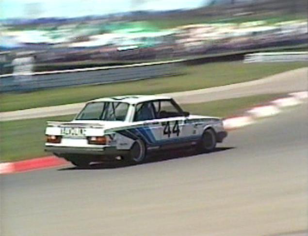 The BLUE/WHITE Mark Petch Motorsports Volvo, which is a LHD 240 Turbo (using car number 1) shown in this race was originally built for the 1984 ETCC season by Guy