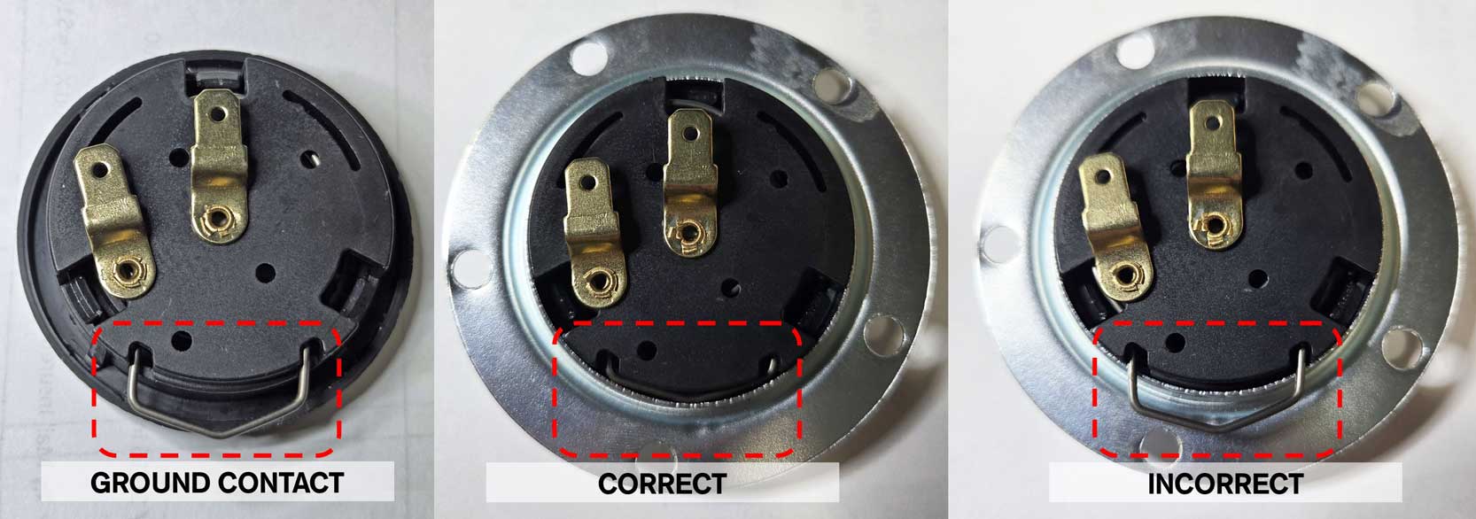 ![]() When installing a horn button like this, you might find it's a bit tight in some steering wheels. The above image shows the button being fitted into a metal ring. Not all aftermarket steering wheels use one of these, but I think most do. The horn button should be pretty tight. It can be easier to insert when you insert the GROUND BAR first, then press the rest of the button into the hole. Not all steering wheels will have a metal ring inside like shown above, but for those that do, this metal ring can be used to complete the horn electrical circuit. Using the ground bar is not required. It's optional. This horn button has three possible places to connect. The ground circuit and two TABS. Note below that the GROUND BAR and GROUND TAB 2 are commonly connected inside the button. When connecting a horn button to a horn circuit, you can use either TAB 2 or the GROUND BAR. You don't need to use both, although using both is OK. When the horn button is pressed, it acts like a switch and the GROUND BAR and/or TAB 2 will then connect to TAB 1. So in simple terms, when Tab 1 and 2 are connected internally, that will complete the horn circuit. ![]() Feel free to email if you have questions: CONTACT |