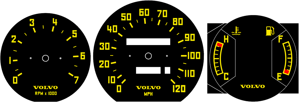 HIGH-QUALITY PRINTED ADHESIVE BACKED VINYL GAUGE FACE OVERLAYS All sets are custom printed to order. These face overlays are the product of years of development using 240 instrument clusters from my own cars and from junkyards. I originally began designing them for my own 245 Turbo in 1999. I then received so many requests from other 240 owners that I decided to make them available for a modest price. ABOUT