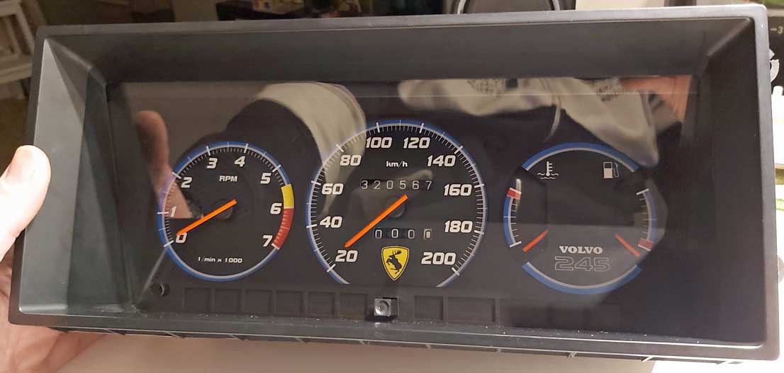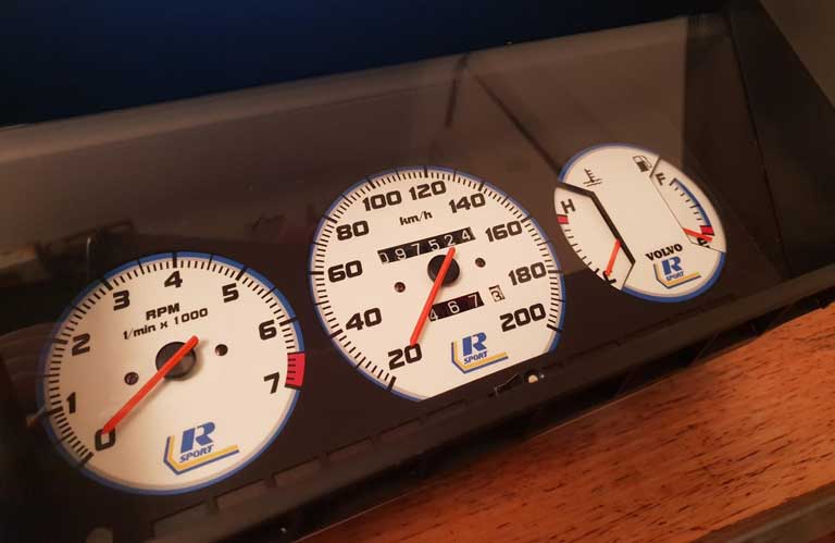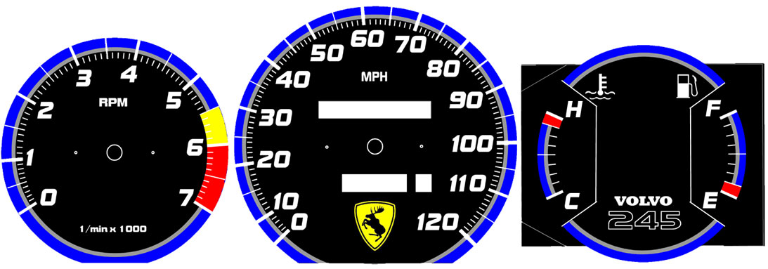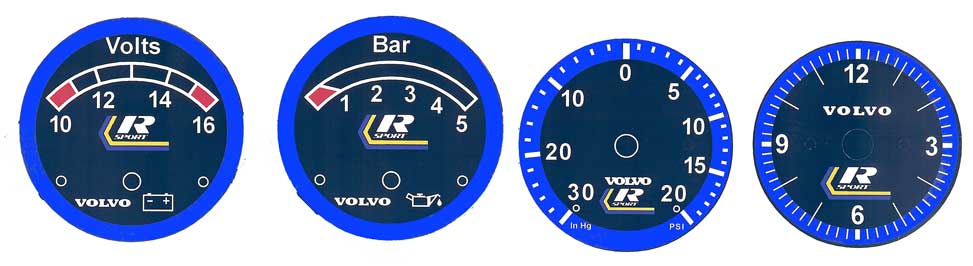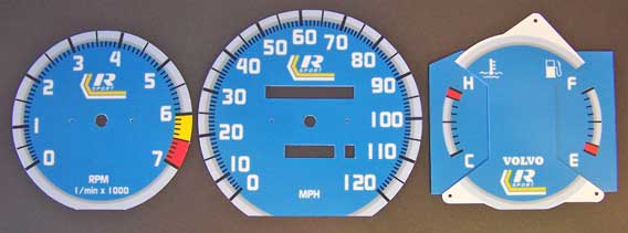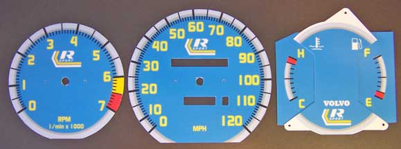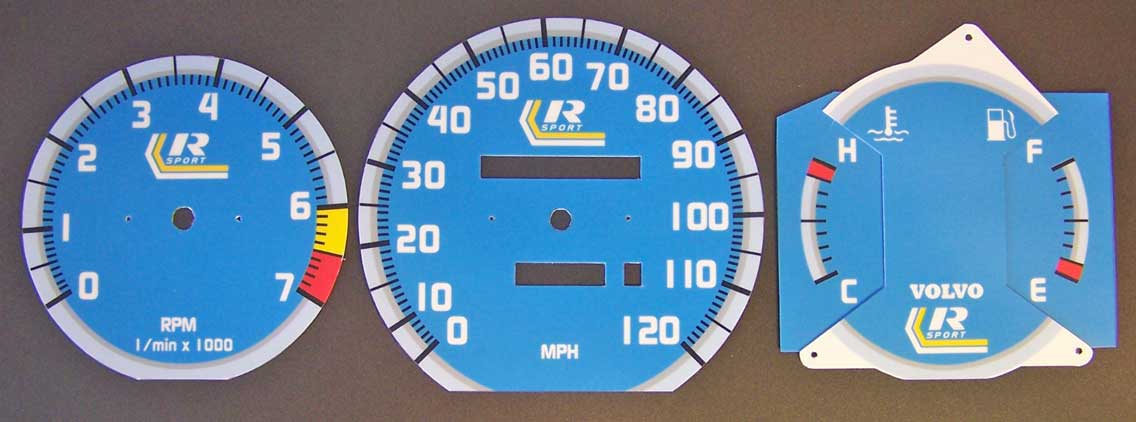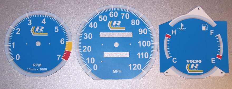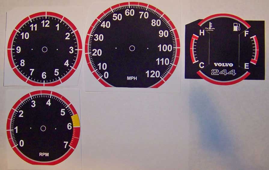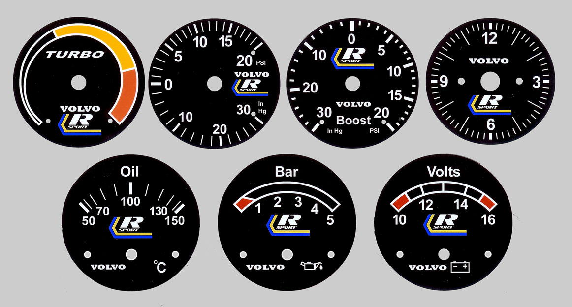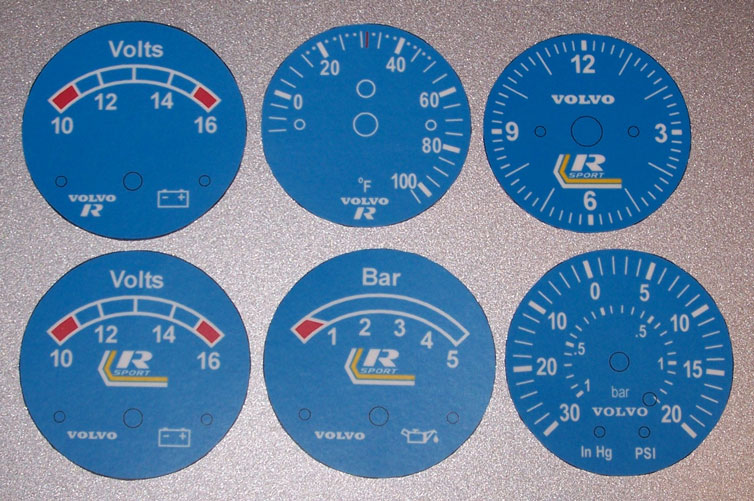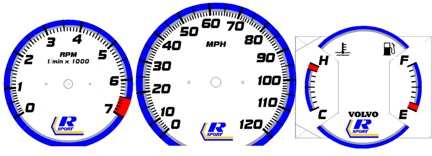 to bottom of tach. VOLVO on temp/fuel and