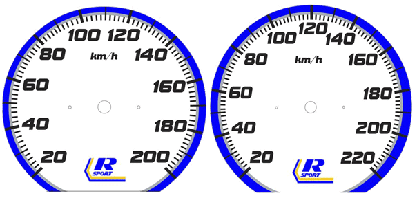 This example was done with a 200 km/h speedo, but is