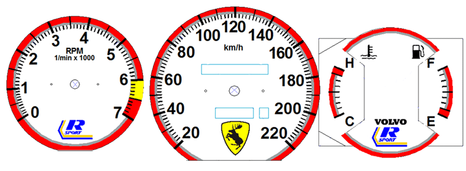 White-Face Red Ring, 220 kmh, 6500 redline