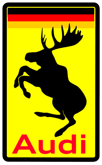 Moozda (Ferrari Parody) Vinyl Sticker or with optional Magnetic Backing or Reverse Inside Window Decal. M2 Moozda 2 inches tall (52 mm): $3.00 ea. M3 Moozda 3 inches tall (75 mm): $5.00 ea. M4 Moozda 4 inches tall (100 mm): $6.00 ea. M5 Moozda 5 inches tall (126 mm): $7.00 ea. When