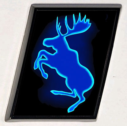 CHROME Slanted Emblem SPECIAL. This was a special custom request from a customer. The Polestar Gold is a special iridescent gold color. 27 mm tall (small) PN 102727PGold Black Moose on Polestar Goldbackground. Gloss finish.