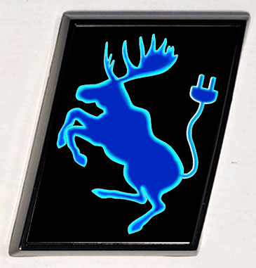 BLACK Slanted Emblem SPECIAL. 27 mm tall (small) PN 102727BPGold Black Moose on Polestar Goldbackground. Gloss finish.