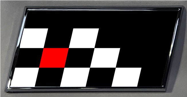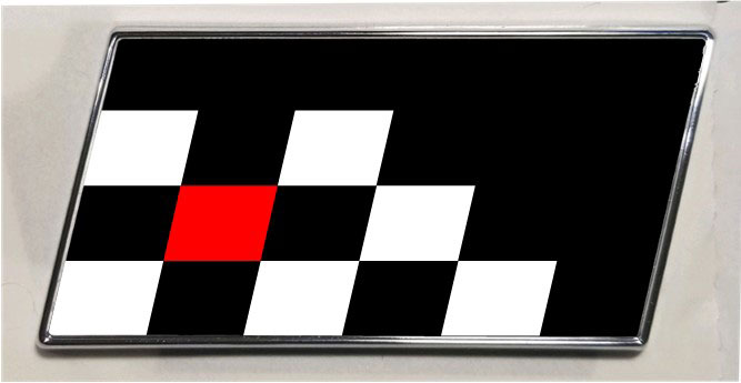 BLACK BORDER Slanted Emblem. PN 103572twinb. BLACK background. Gloss finish or Matte finish inlay.