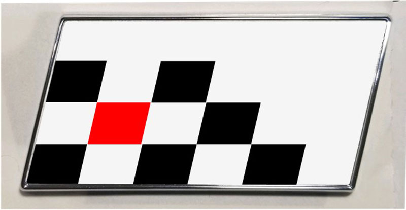 BLACK BORDER Slanted Emblem. PN 103572T9W1b. WHITE background. Gloss finish or Matte finish inlay.