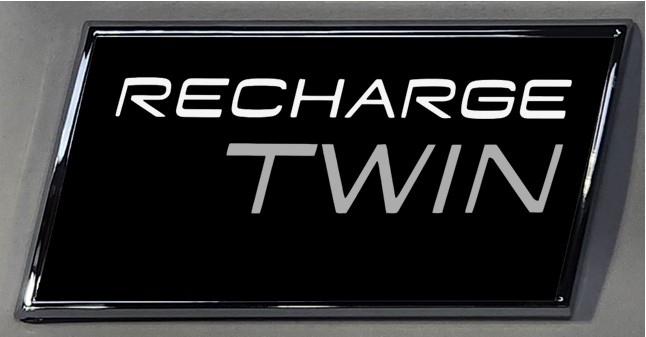 BLACK BORDER Slanted Emblem. PN 103572twinb. WHITE background. Gloss finish or Matte finish inlay.