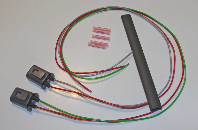 Harness Pigtails Below Beginning about 2003, some models will have Variable Valve Timing (VVT) or Continuous Variable Valve Timing (CVVT). There systems use electric solenoids mounted under the coil cover and each solenoid will have a connector. Some models will have only ONE solenoid and some will have TWO. These solenoids are near the FRONT of the engine, behind the timing sprockets, and there will be ONE or TWO connector plugs, depending on the year and model. You may re-use your old VVT or CVVT connectors and the wires if you prefer (if they're in good condition), but you will need to cut wires and remove the wires from your old coil harness bundle. All new connector plugs with wire pigtails are available below if you decide to renew them when replacing the coil repair harness. In cases where dual VVT plugs are present, the two plugs are different so they cannot be mixed up or plugged into the wrong location. |